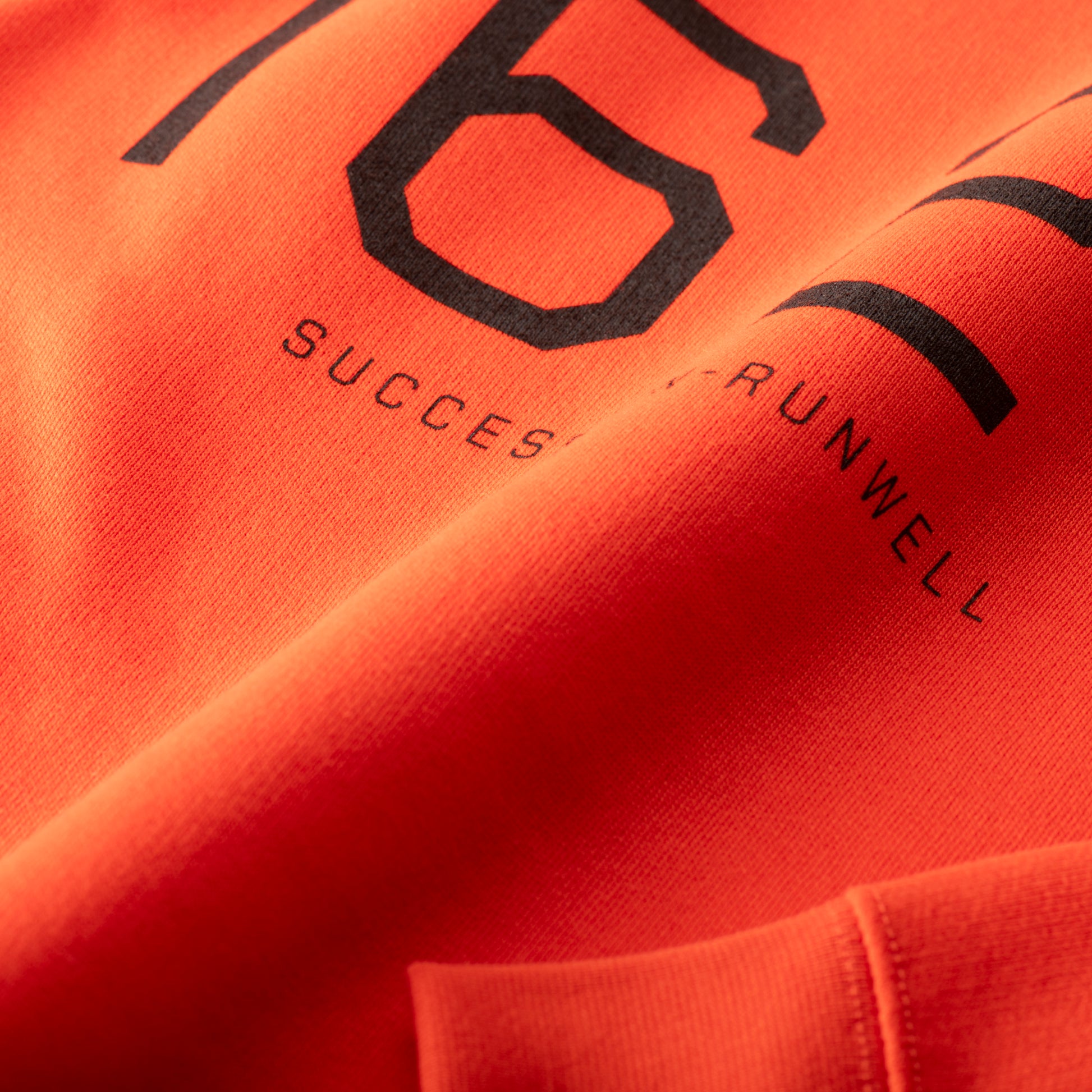 熱した鋼の色のオレンジ【HEATED STEEL】と鋼色の黒【BLACKSMITH】の2色展開。生地は厚手の10オンスで、ドライ裏フリースのトレーナー。越後の冬の現場で作業する職人のために、厚手の寒冷地仕様となっております。
