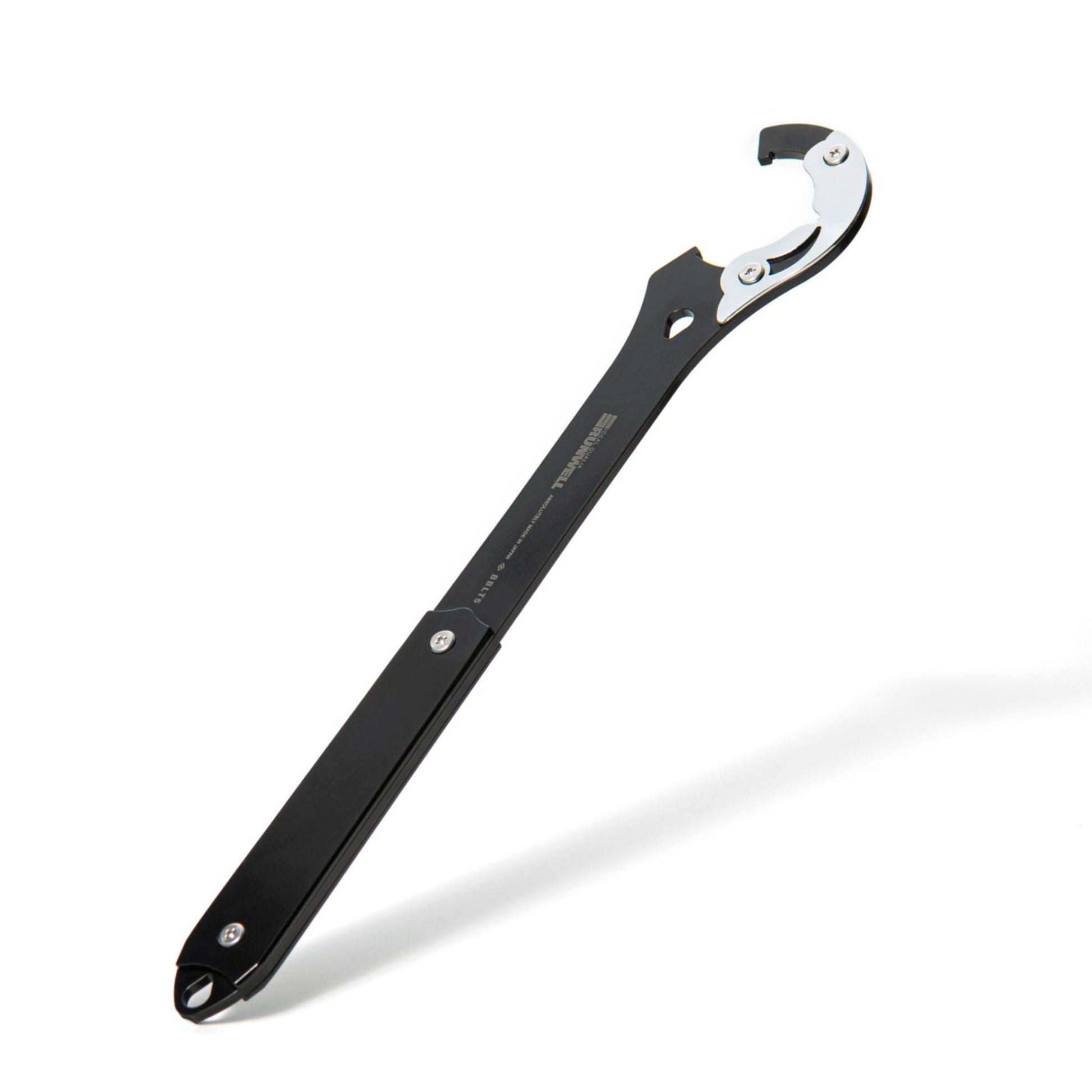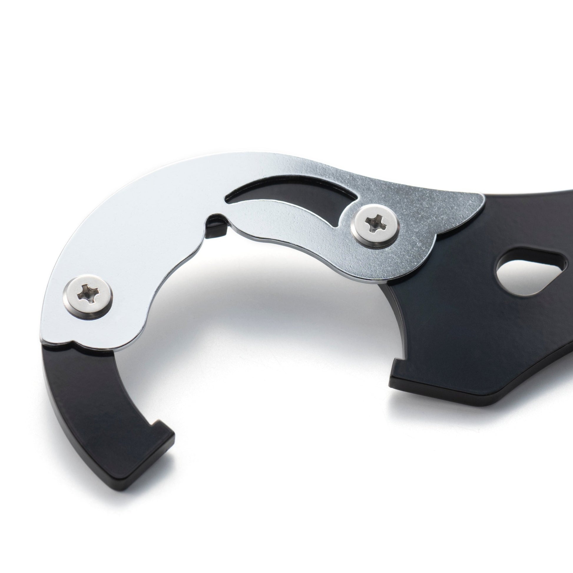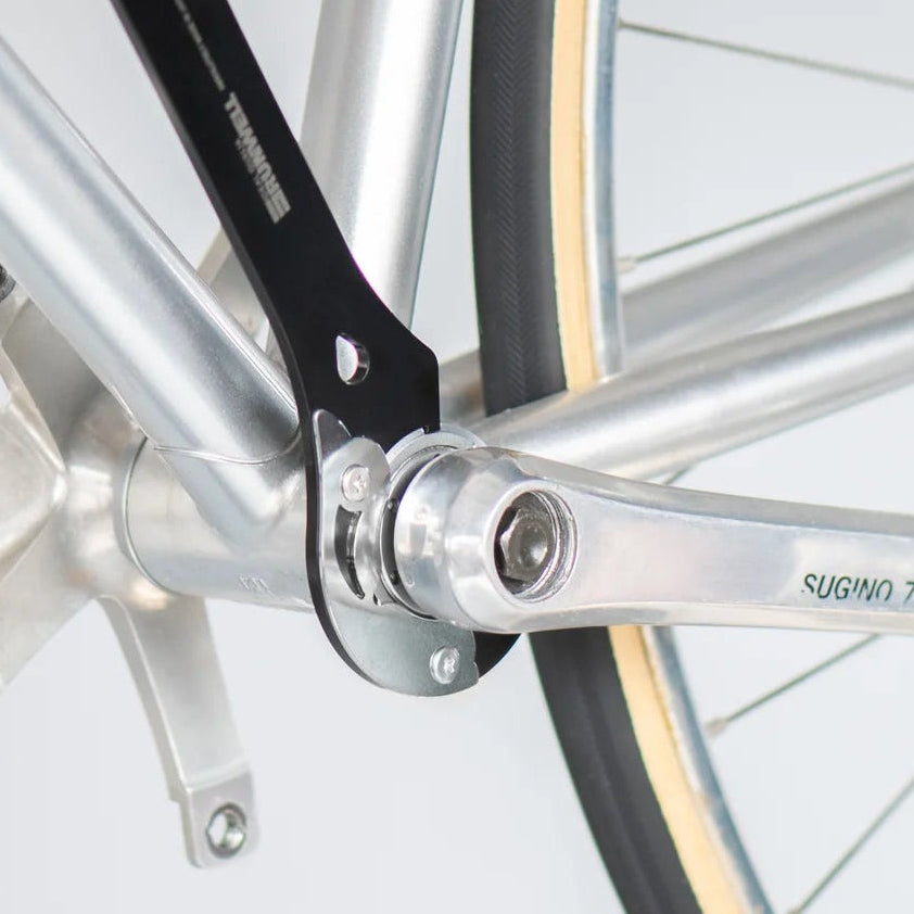 BBLT5(ボトムブラケットロックリングツール)は、NJS認定のBBロックリングを調整するプロ向け工具です。クランクを外さず作業ができるオープン型レンチに、BBと工具を平行に保つガイドプレートを付けました。掛け損じを防止し、僅か約3.5ミリのアルミ製ロックリングにも安定したトルクを掛けられます。