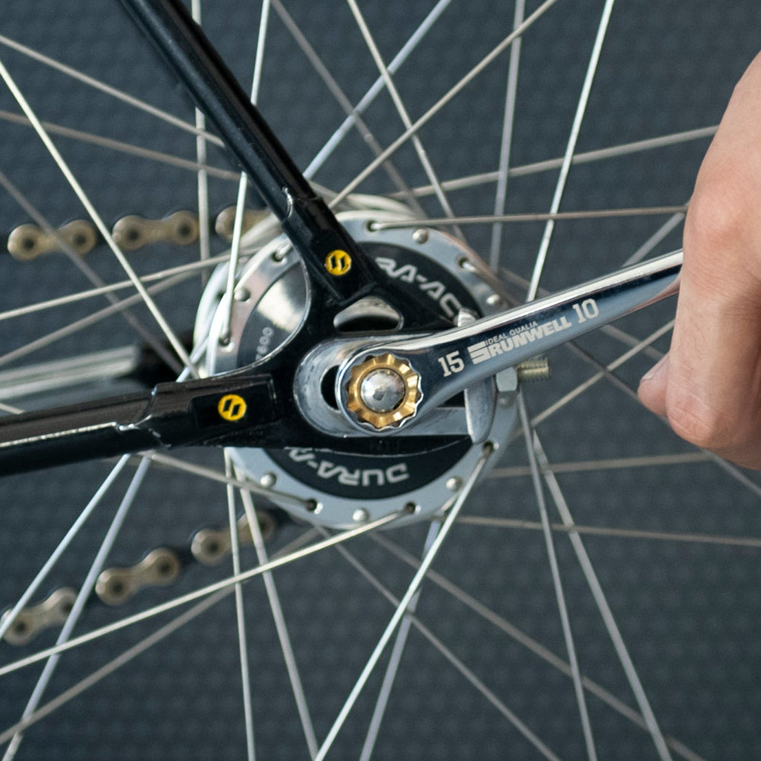 競輪選手の定番レンチ!チェーン引きナットとハブナットの脱着が一本で完結します。熱間鍛造の10×15mmレンチはここだけ!