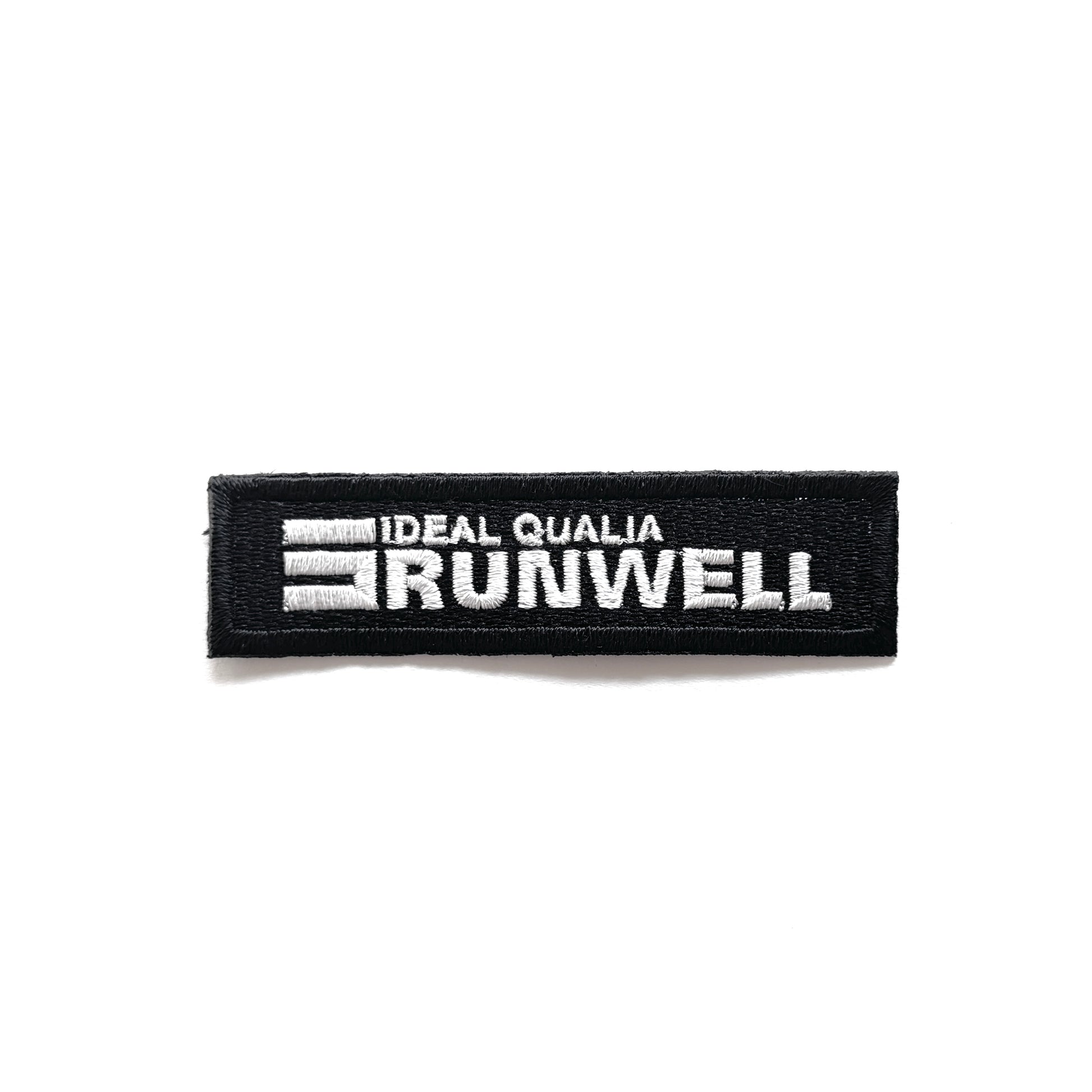 Runwellのロゴワッペンを一新しました。黒バックに白ロゴを採用し、どこでも使いやすいサイズにリメイク。バックやキャップ、シャツやパンツのカスタマイズにご活用ください。